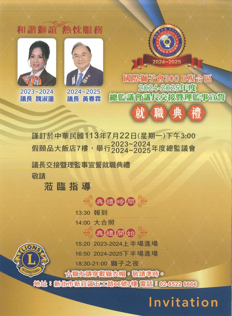 2024/7/22(一)2023-24年度、2024-25年度 B複合區議長交接典禮訂於新莊頤品大飯店舉行